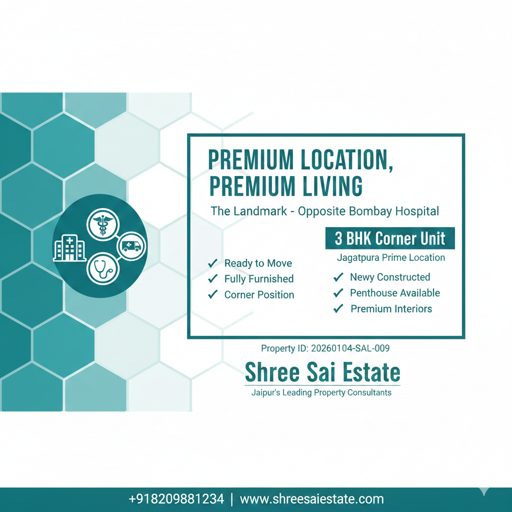 Residential Property Apartment / Flat for Sale in , JDA + RERA Approved 3 BHK, Apartment / Flat in The Landmark, Opposite Bombay Hospital, Jagatpura, Jaipur