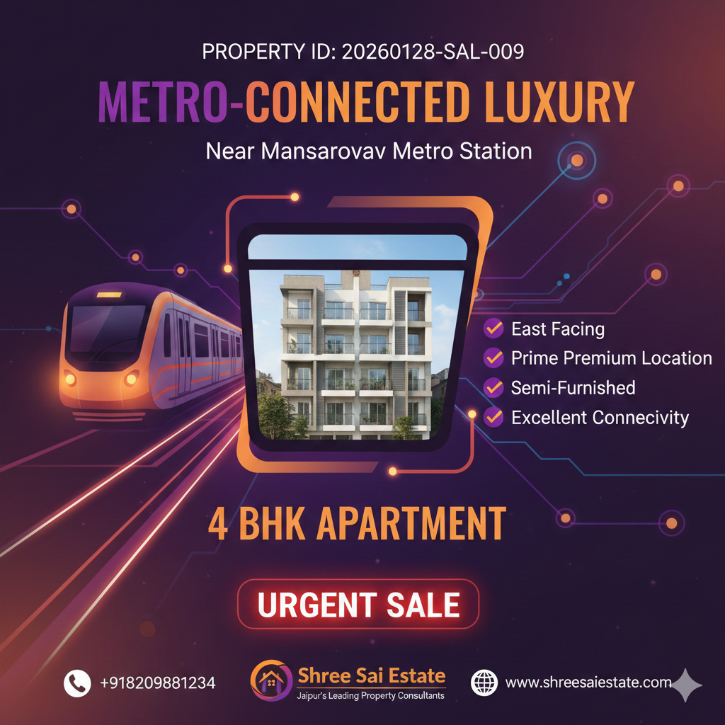 Residential Property Apartment / Flat for Sale in , JDA + RERA Approved 2850 Sqft, Apartment / Flat in 100 meters from Shyam Nagar Metro Station, Jaipur