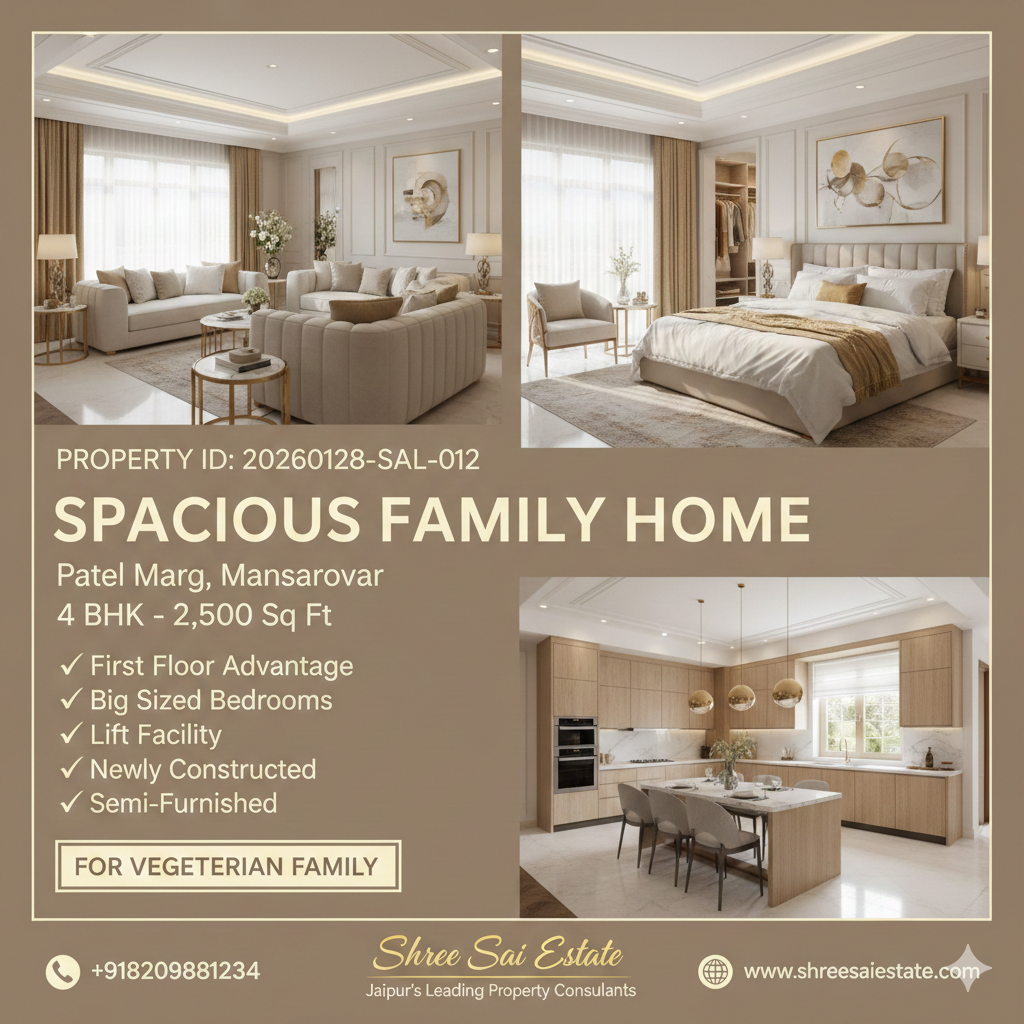 Residential Property Apartment / Flat for Sale in , JDA + RERA Approved 2500 Sqft, Apartment / Flat in Patel Marg, Mansarovar