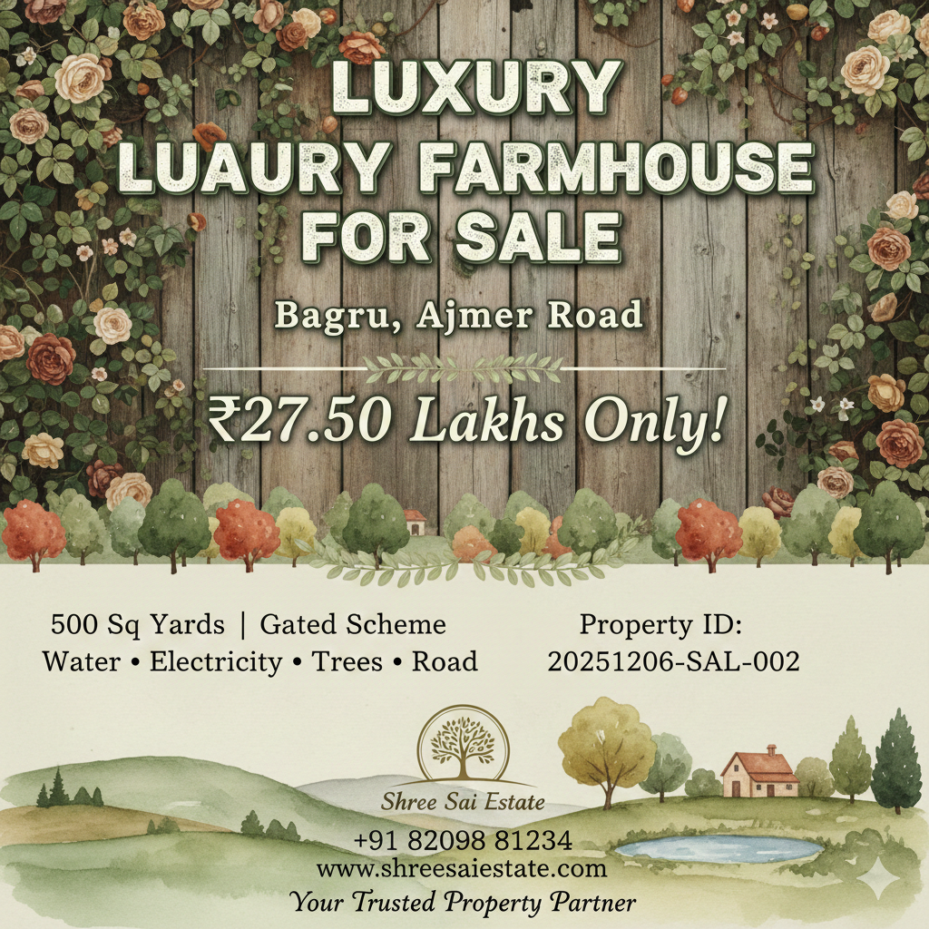 Residential Property Farm Hourse for Sale in , JDA + RERA Approved 500 sq yards, Farm Hourse in Bagru, Ajmer Road, gated scheme with all amenities