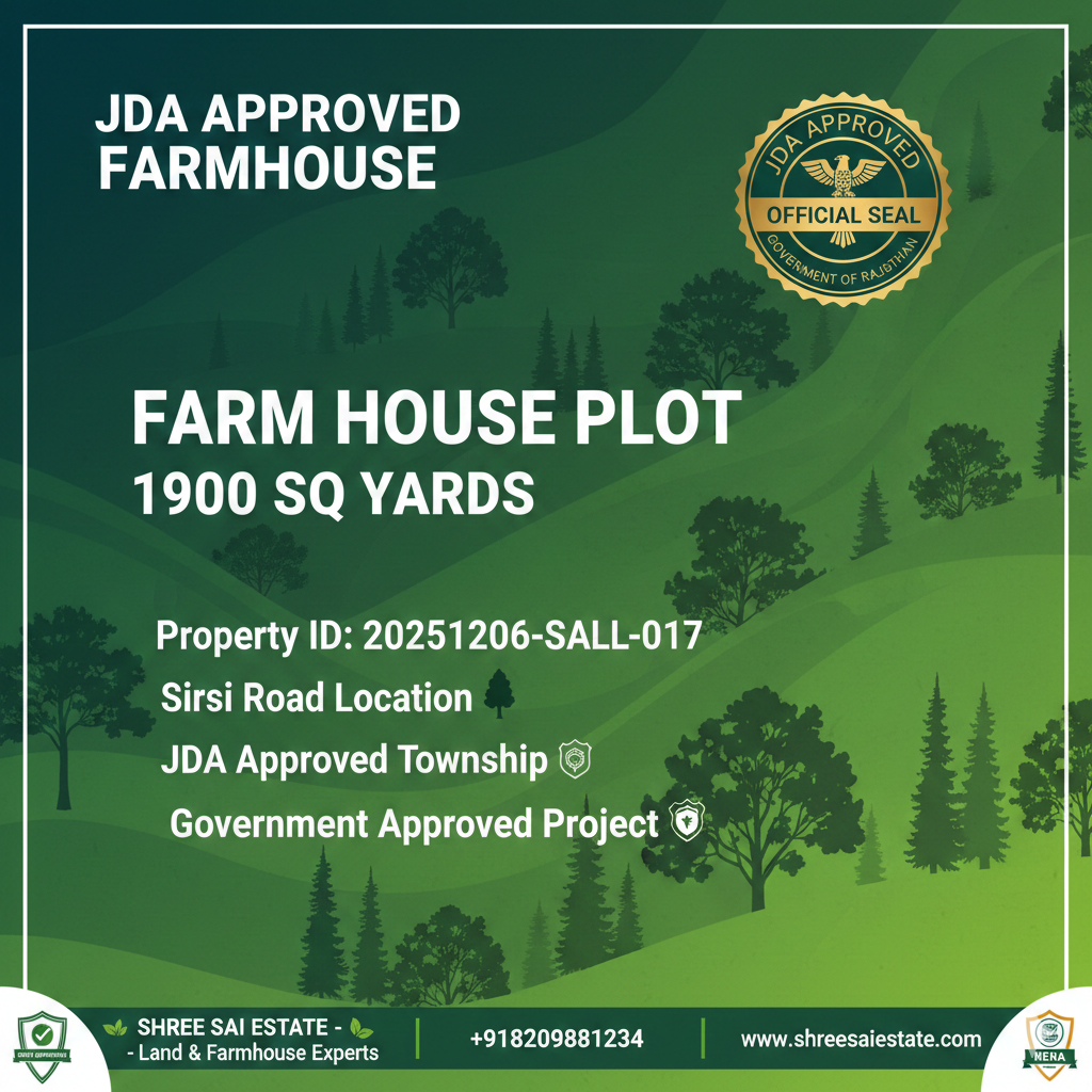 Residential Property Farm Hourse for Sale in , JDA + RERA Approved 1900 sq yards, Farm Hourse in Sirsi Road, outskirts location