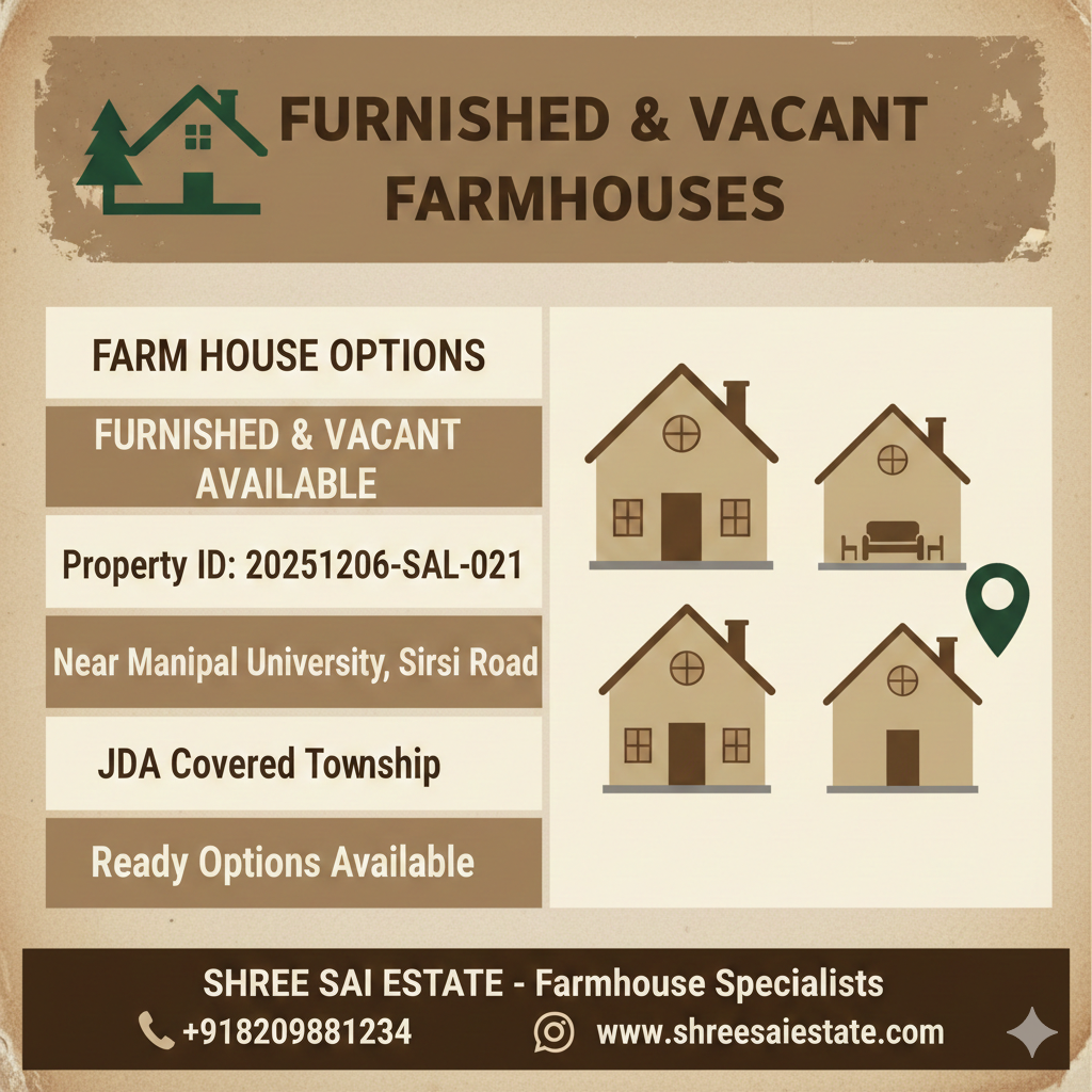 Residential Property Farm Hourse for Sale in , JDA + RERA Approved Contact for Size, Farm Hourse in Sirsi Road, near Manipal University, JDA covered township
