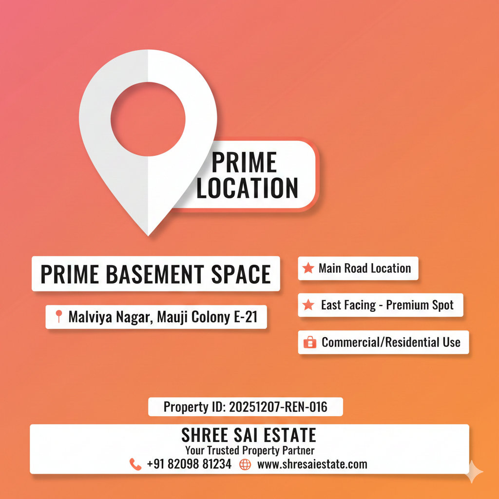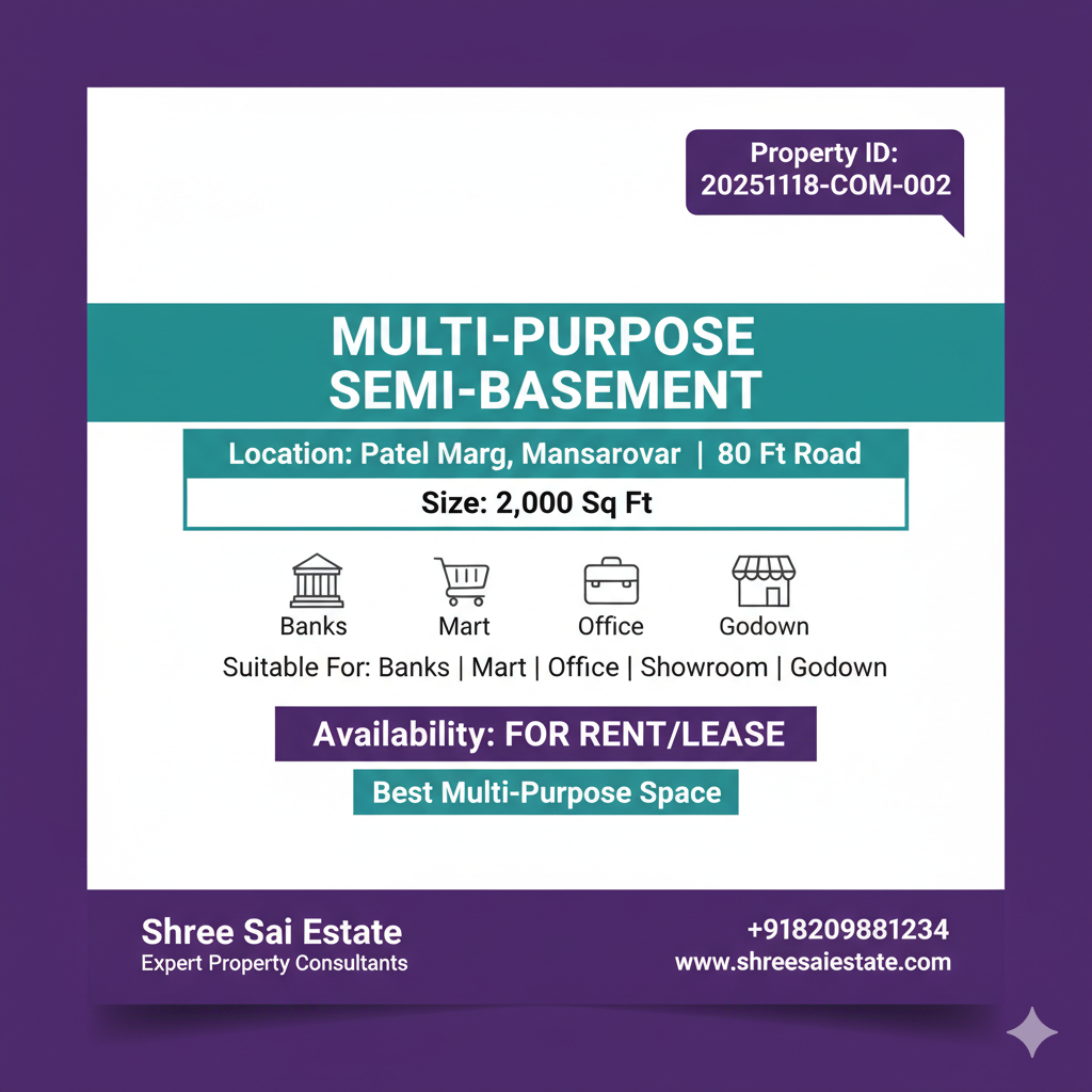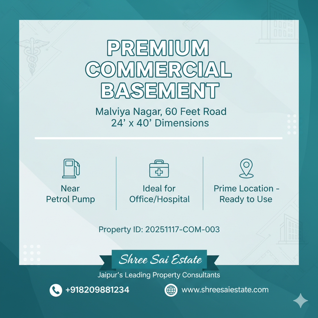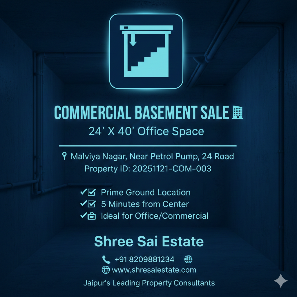 1000 Sq. Ft. Commercial Semi-Basement Space for Rent – Malviya Nagar, Jaipur