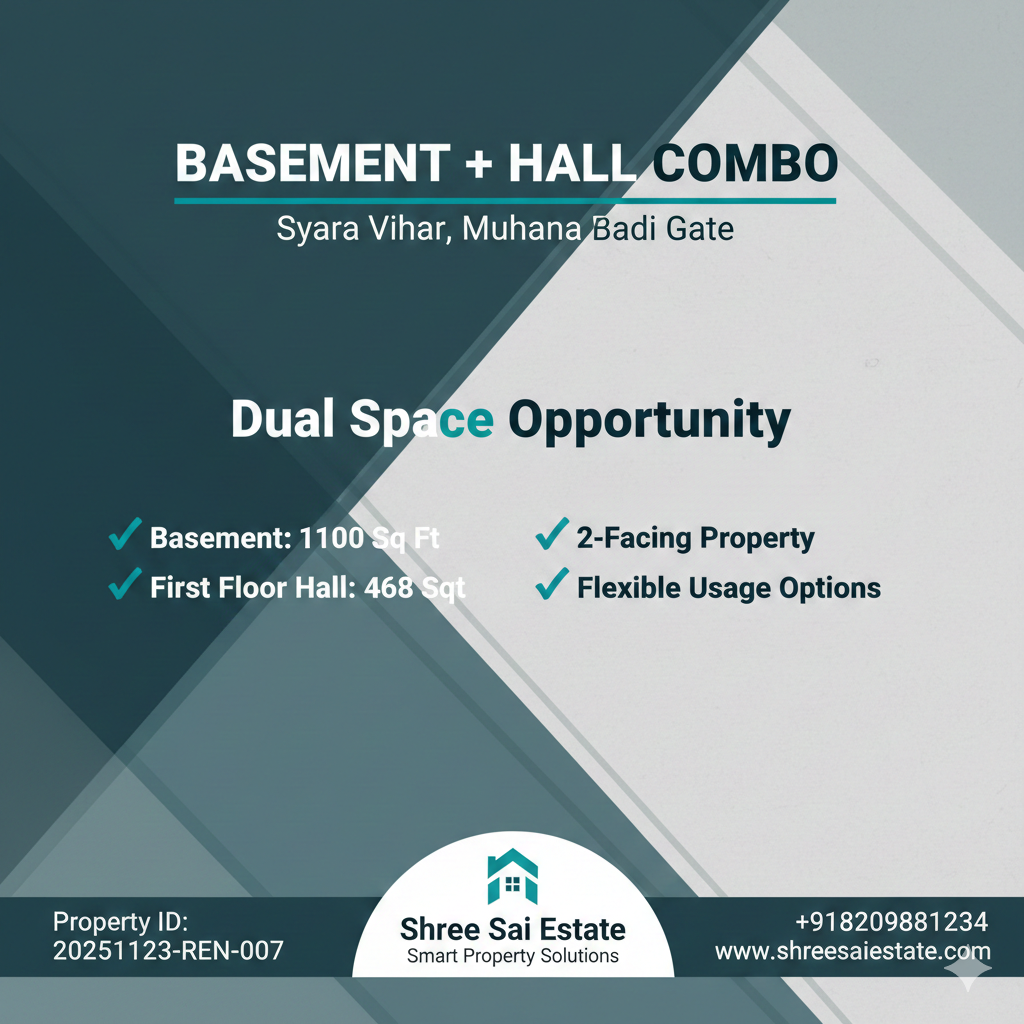 1,100 Sq Ft Basement + Hall Space for Rent in Syara Vihar, Muhana