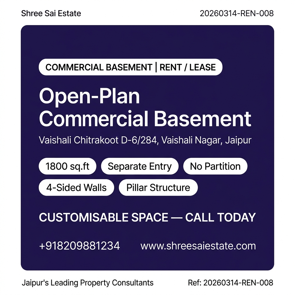 1800 Sq. Ft. Commercial Basement for Rent/Lease – Vaishali Nagar, Jaipur