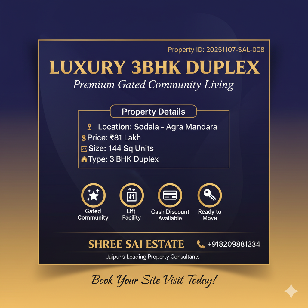4 BHK Duplex Villa for Sale – Ajmer Road, Jaipur (JDA Approved)
