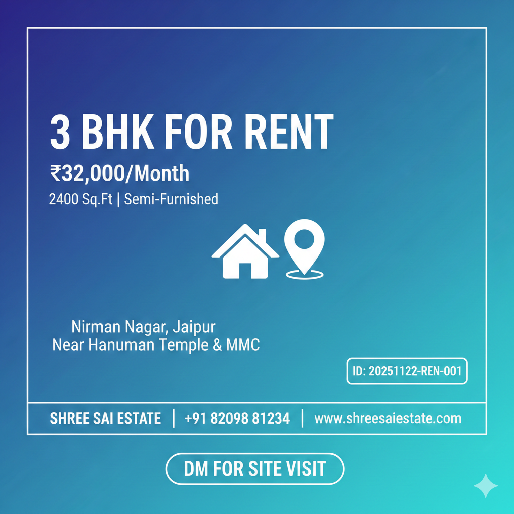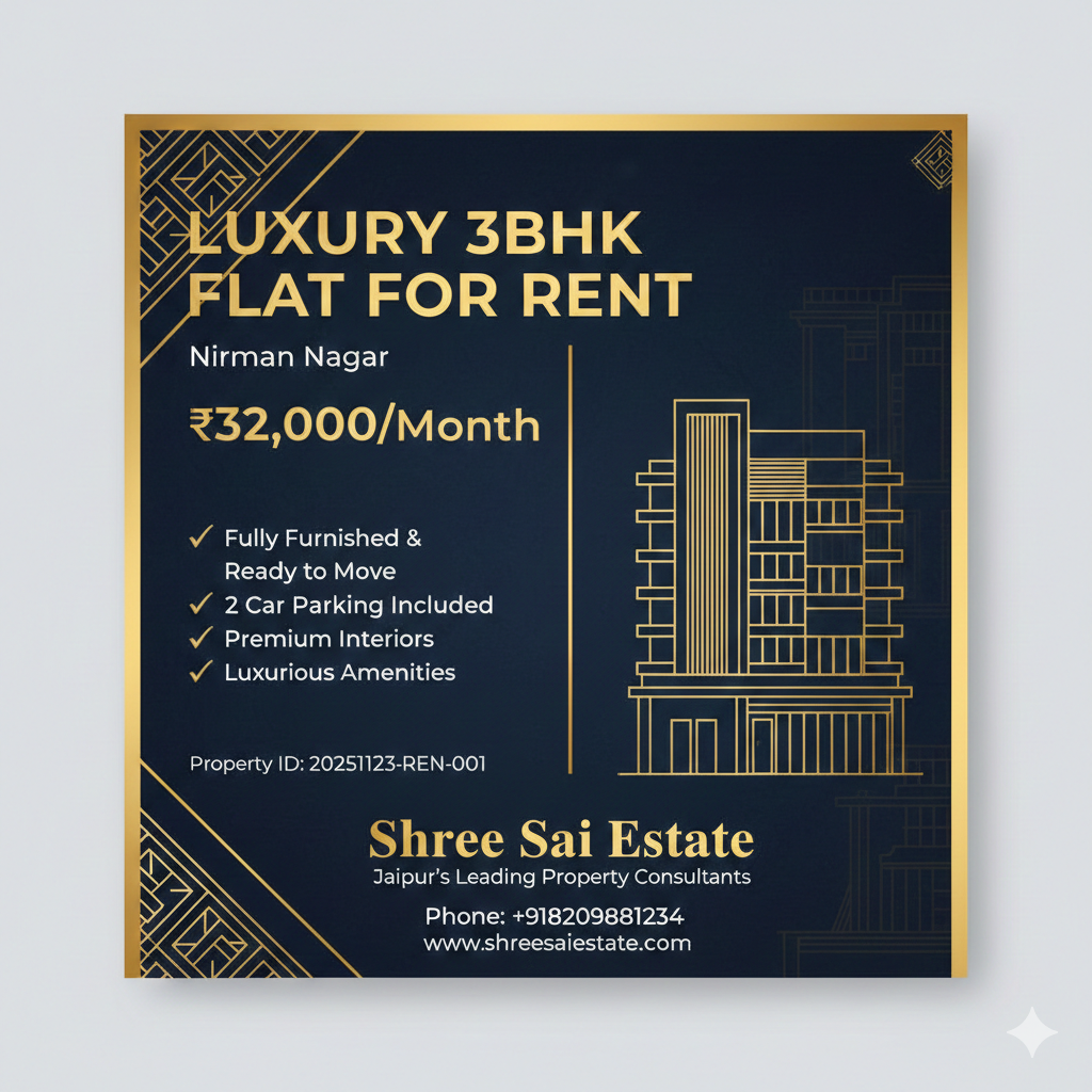 3 BHK Furnished Flat + Commercial Basement for Rent on 60 Ft. Road – Nirman Nagar, Jaipur