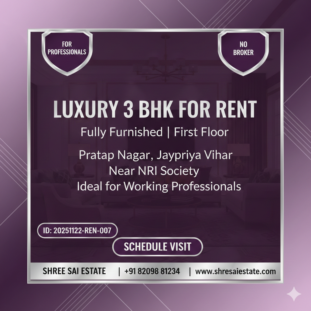 Furnished 3 BHK Flat for Rent in Vaishali Nagar Jaipur — Silver Crown Society
