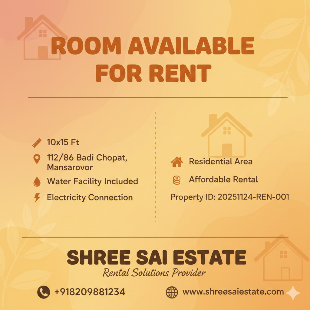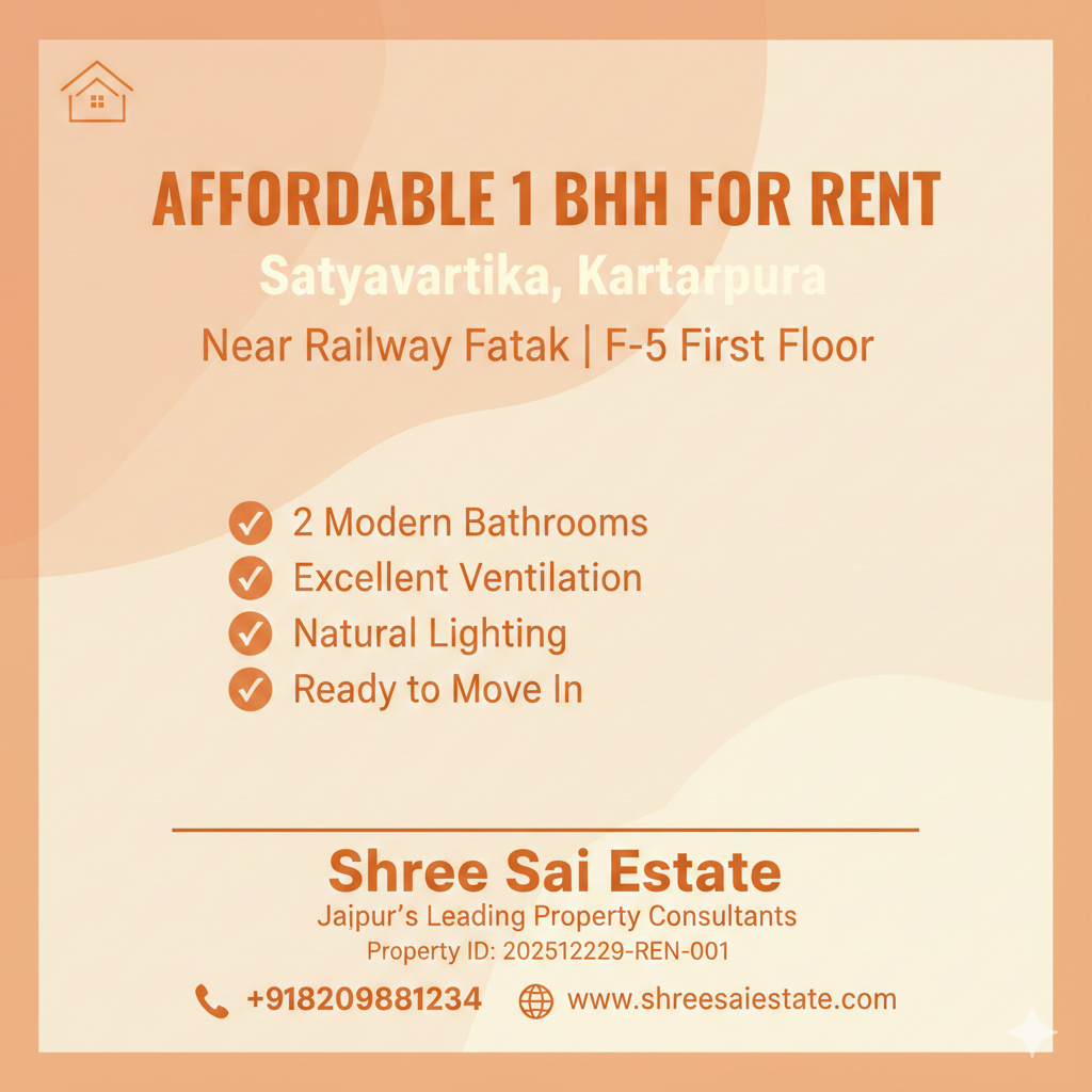 1 BHK Flat for Rent Near Kartarpura Railway Station