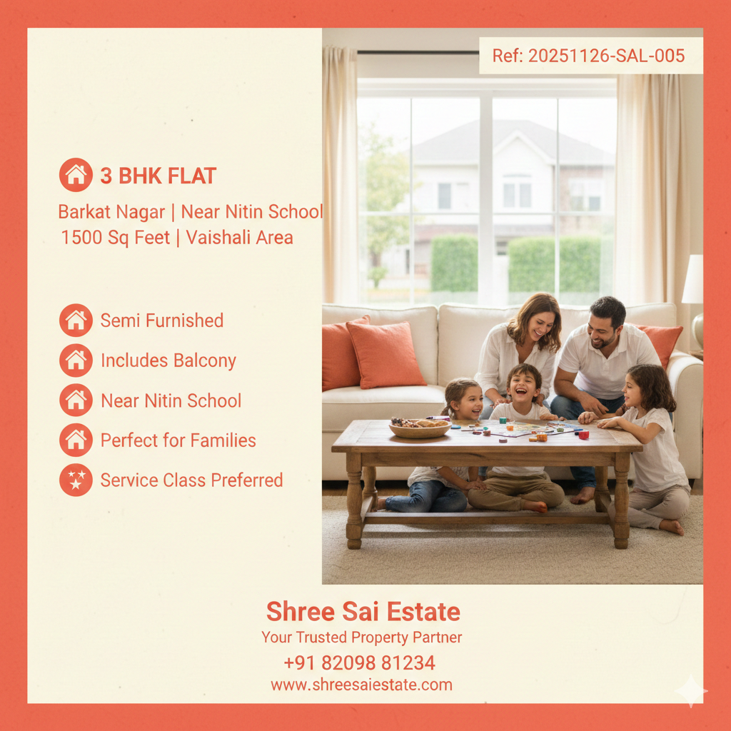 Premium 3BHK Flat Near Sabar Lake, Vaishali Nagar