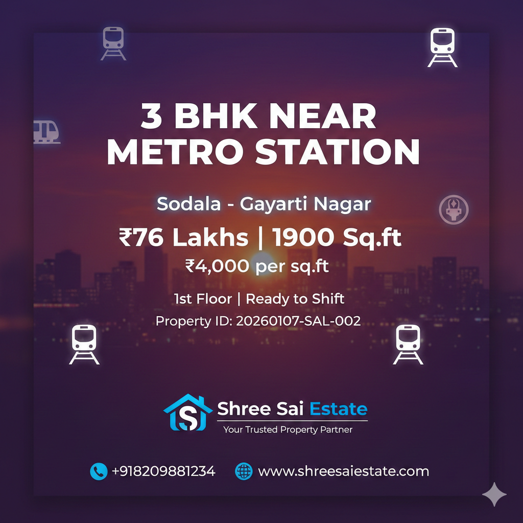 3 BHK Flat Near Metro Station Sodala Gaytri Nagar - Ready to Shift