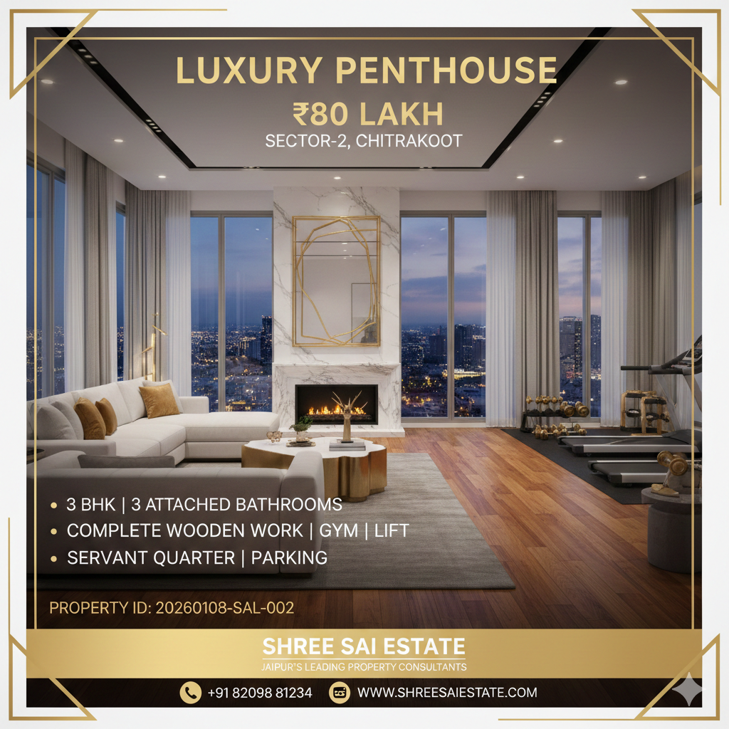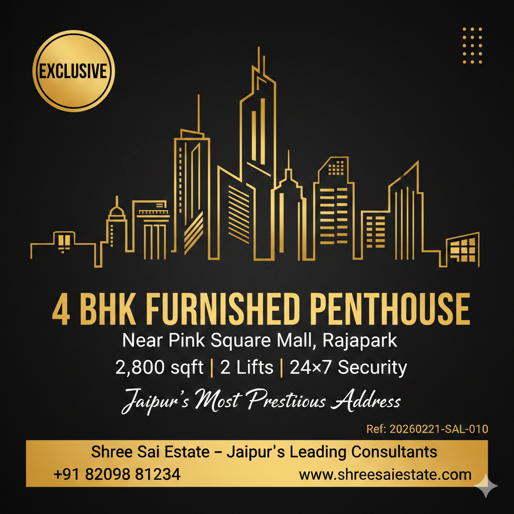4 BHK Furnished Penthouse 2,800 Sq Ft with Dual Lifts & 24×7 Security – Near Pink Square Mall, Rajapark, Jaipur