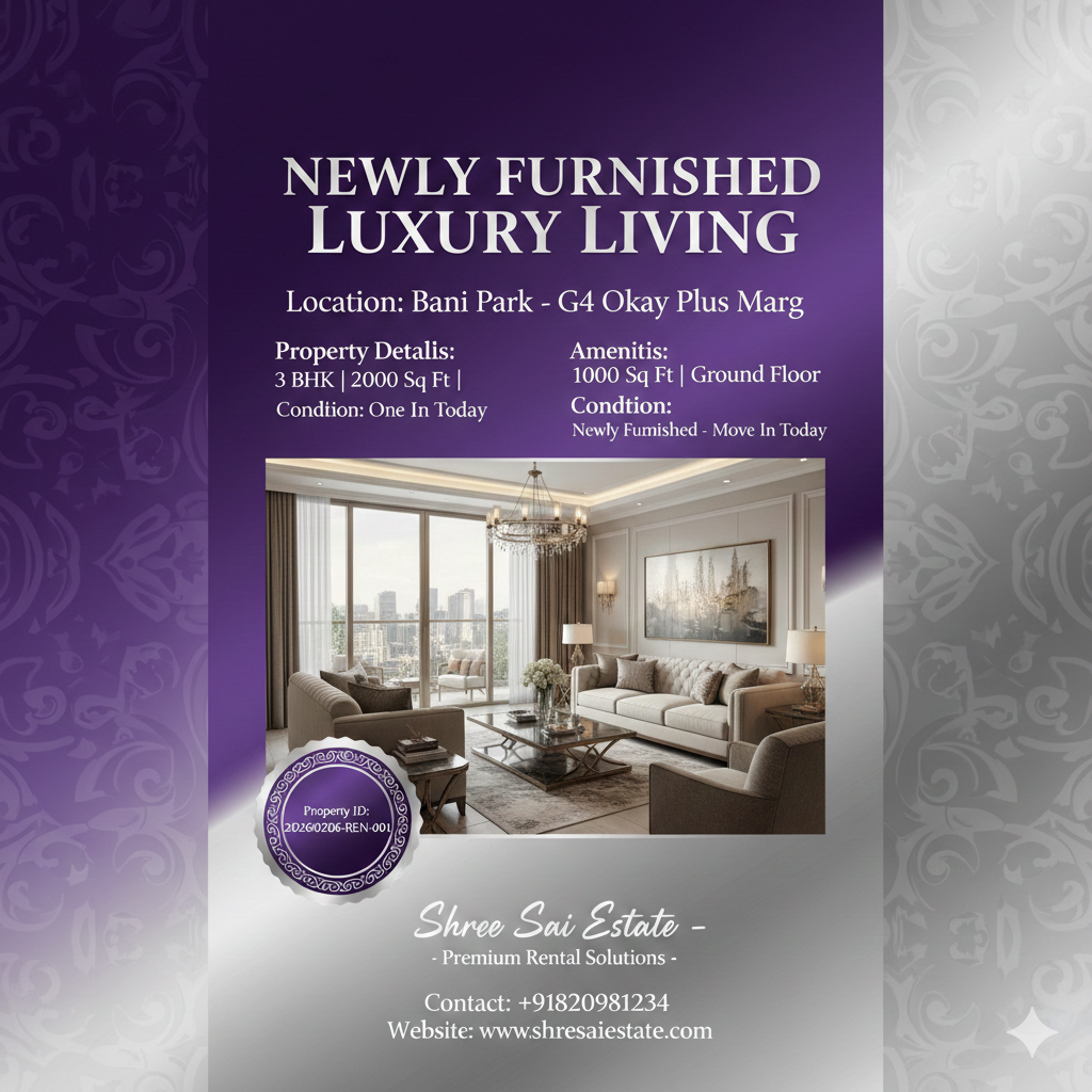 Newly Furnished 3 BHK Ground Floor Flat for Rent in Bani Park
