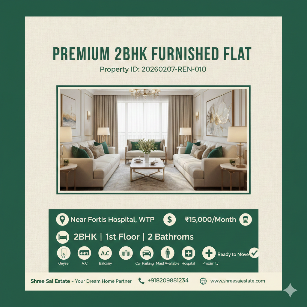 Furnished 2 BHK First Floor Near Fortis Hospital - ₹15,000/Month