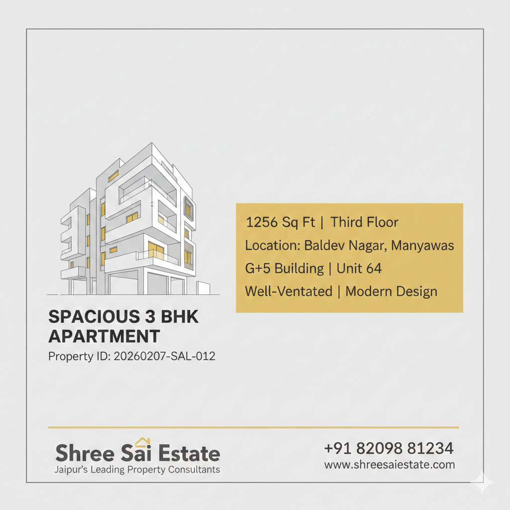 3 BHK Third Floor Flat 1256 sqft - Baldev Nagar Manyawas