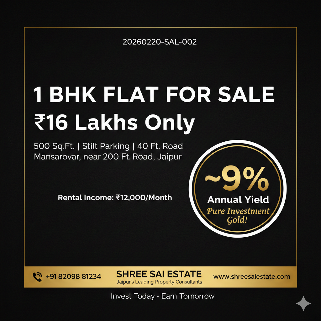 1 BHK Flat for Sale in Mansarovar Jaipur — ₹16 Lakhs with Rental Income