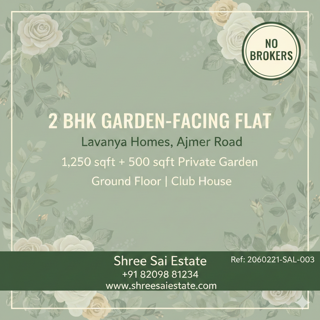 2 BHK Ground Floor Garden-Facing Flat + 500 Sq Ft Private Garden & Clubhouse – Lavanya Homes, Ajmer Road