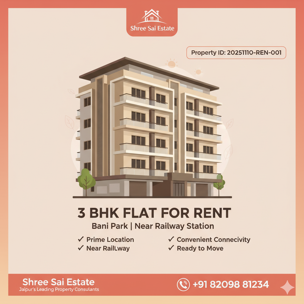 3 BHK Flat with Modular Kitchen & Store Room – Madhav Vilas, Banipark, Jaipur