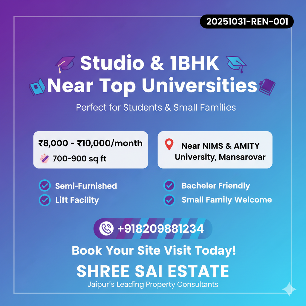 Semi-Furnished Studio/1BHK Near NIMS AMITY University Mansarovar