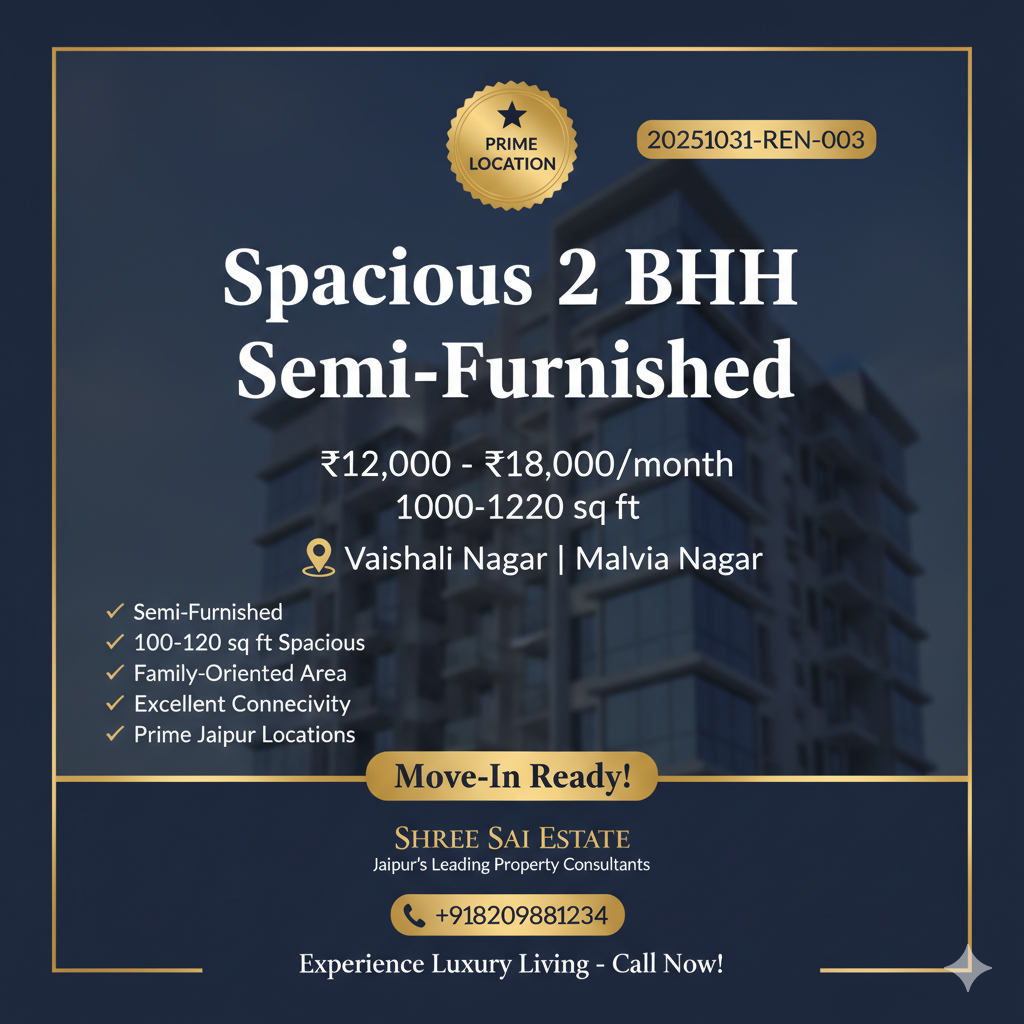 Semi-Furnished 2BHK Flats in Vaishali Nagar & Malviya Nagar