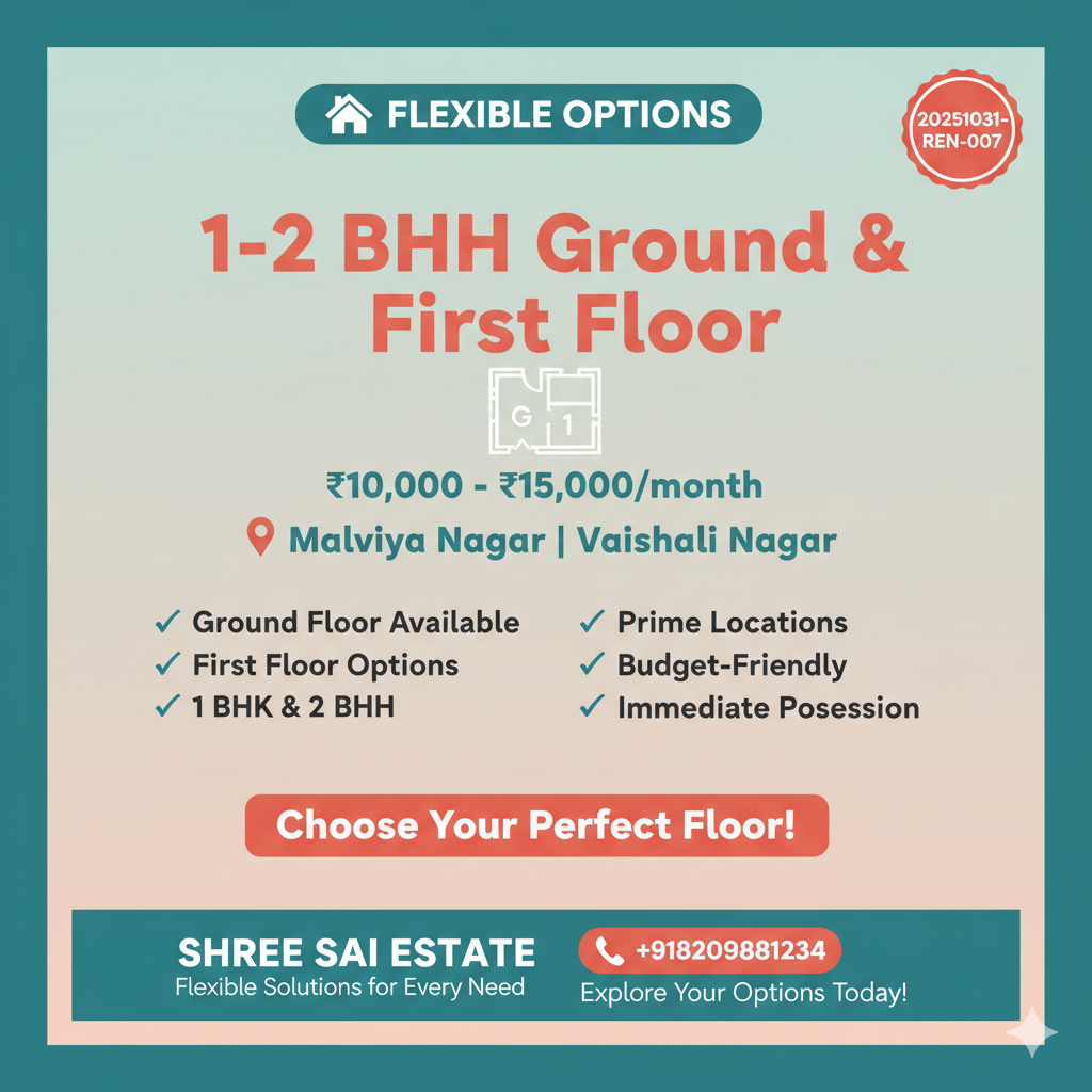 1BHK/2BHK Ground & First Floor in Malviya Nagar & Vaishali Nagar