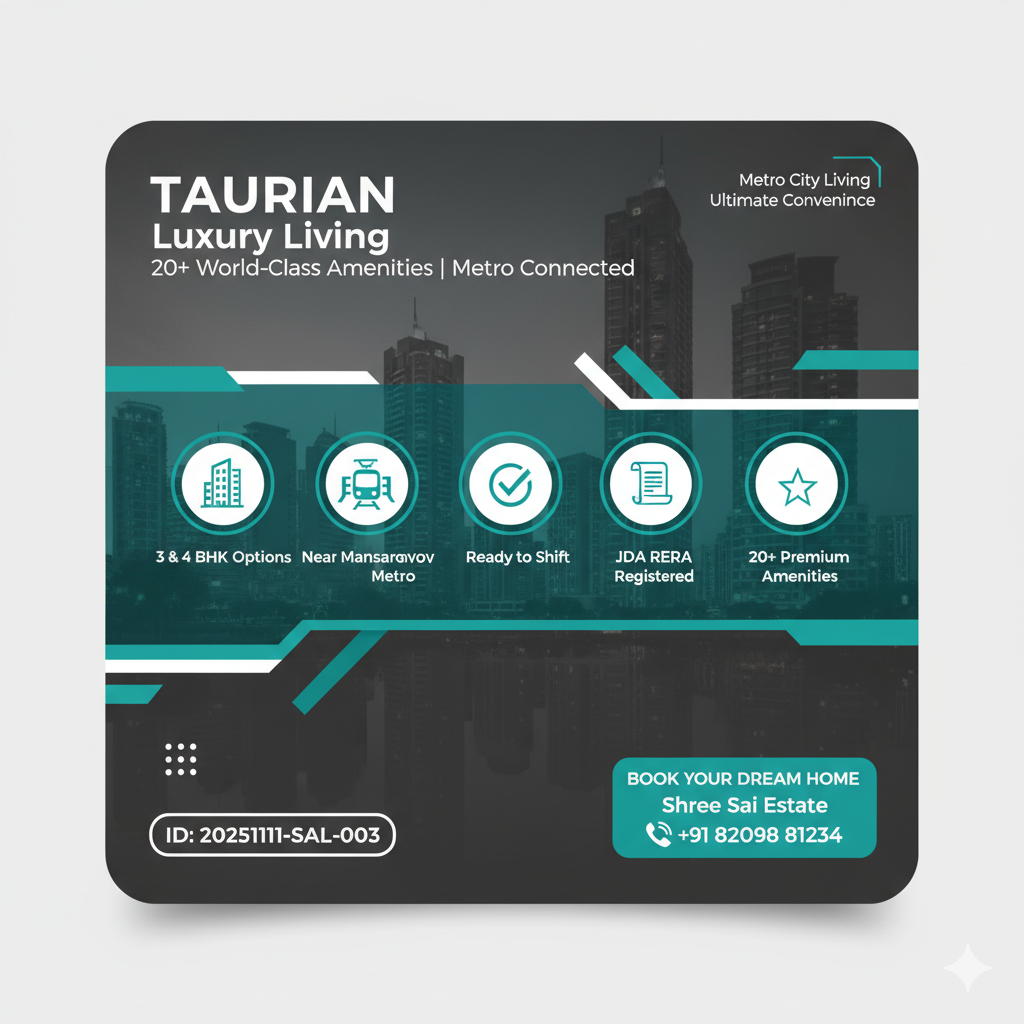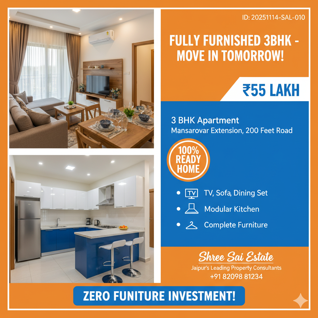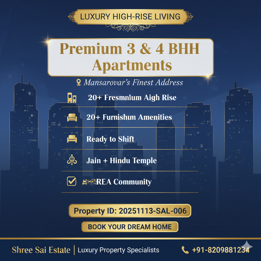 RERA & JDA Approved Furnished 4 BHK Flat Near Mansarovar Metro – 90% Loan Available