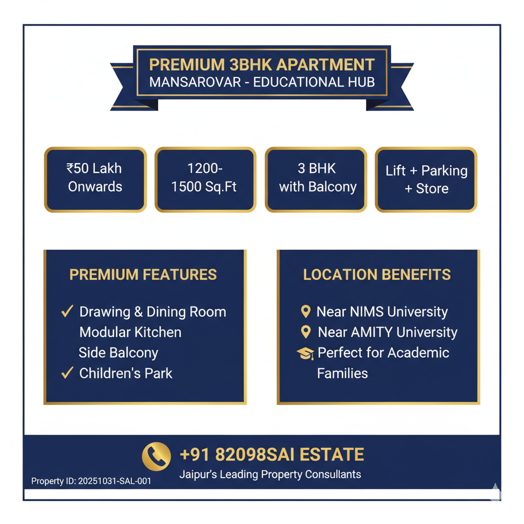 Premium 3BHK Apartments in Mansarovar, Vaishali, Malviya Nagar