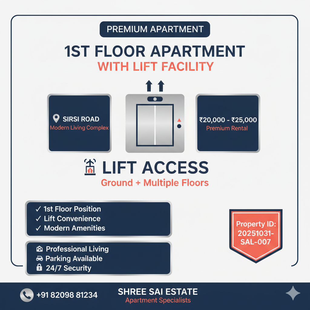 1st Floor Flat on Sirsi Road with Lift - Rent ₹20,000-25,000