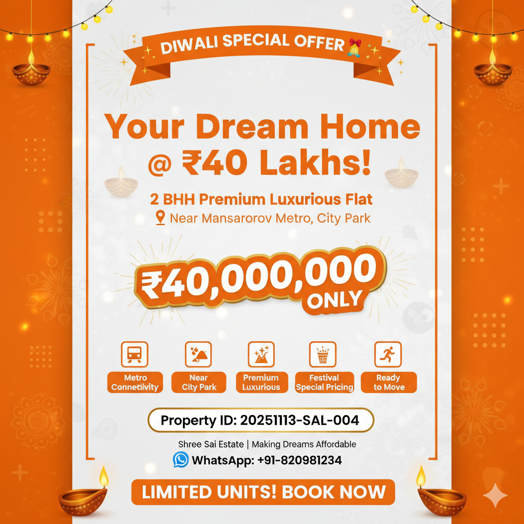 Diwali Special 2 BHK Luxury Flat - City Park Mansarovar