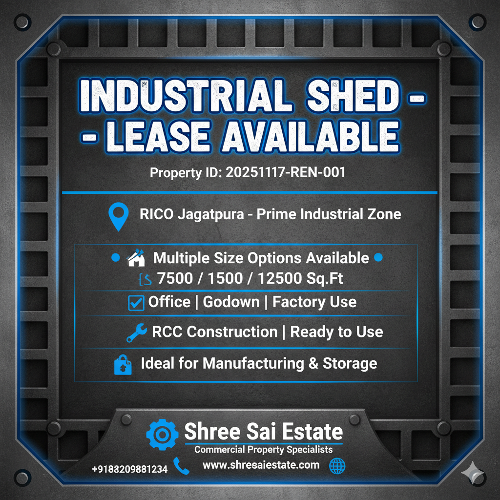Large RCC Industrial Shed Available for Lease in RIICO Jagatpura
