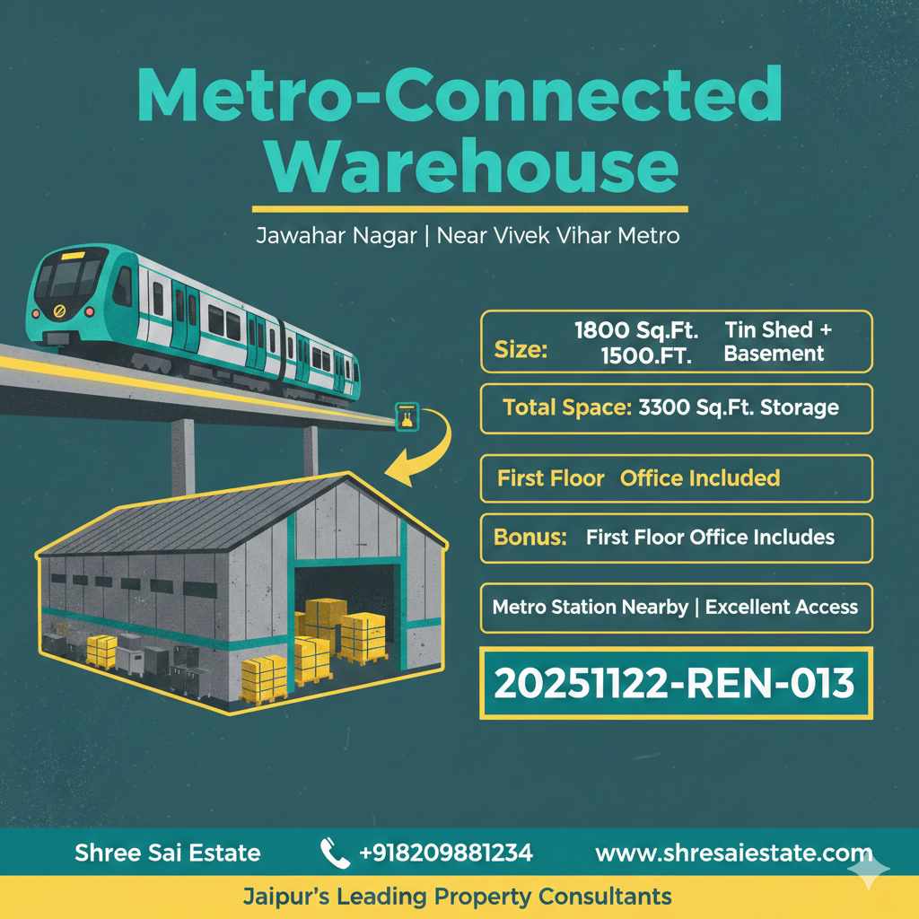 3200 Sq. Ft. Warehouse for Rent on 160 Ft. Road – Kesar Nagar, Jaipur