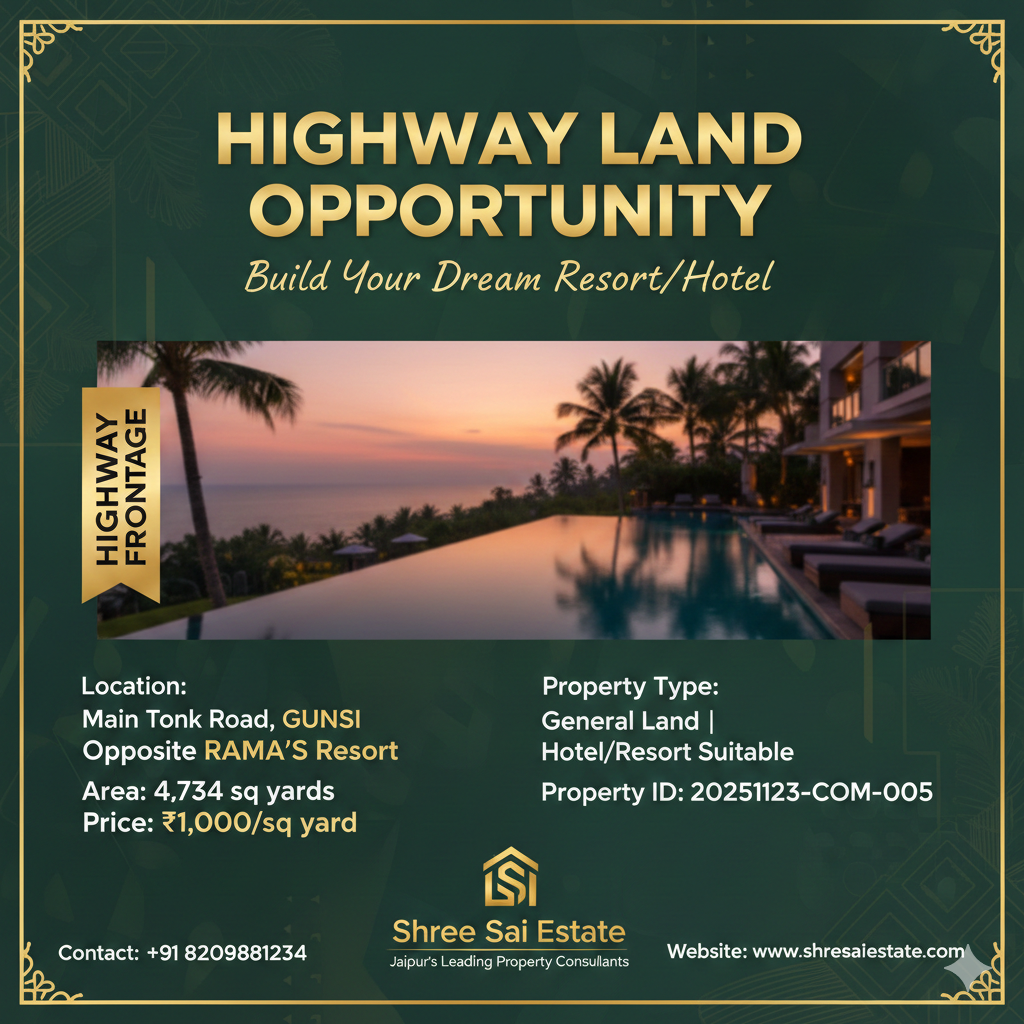 Hotel/Resort Land Tonk Road Highway - 4734 Sq Yards GUNSI