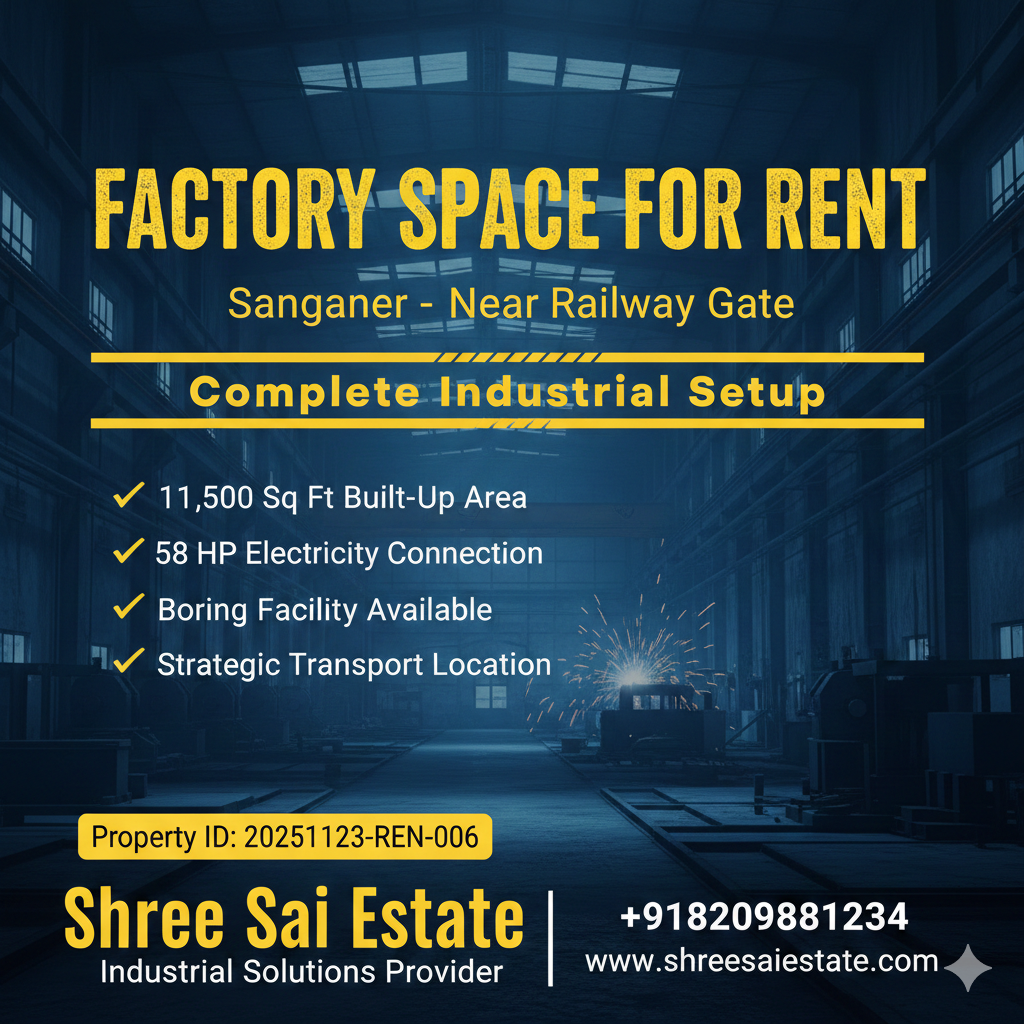 11,500 Sq Ft Factory for Rent in Shikarpura, Sanganer with 58 HP Power