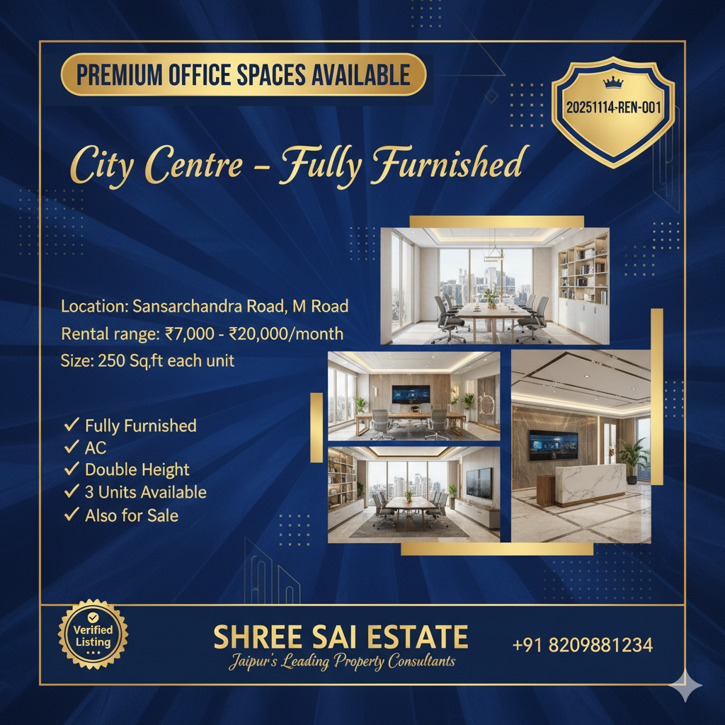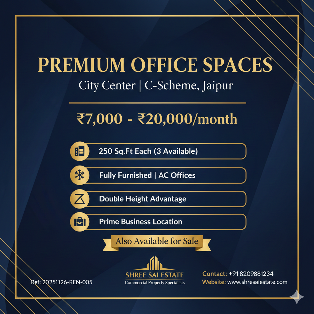 Premium 1000 Sq Ft Office Space for Sale in C-Scheme Jaipur