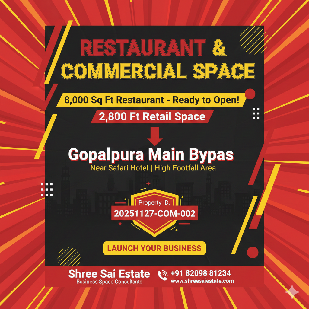 Ready Restaurant & Commercial Space Near Safari Hotel, Gopalpura Bypass