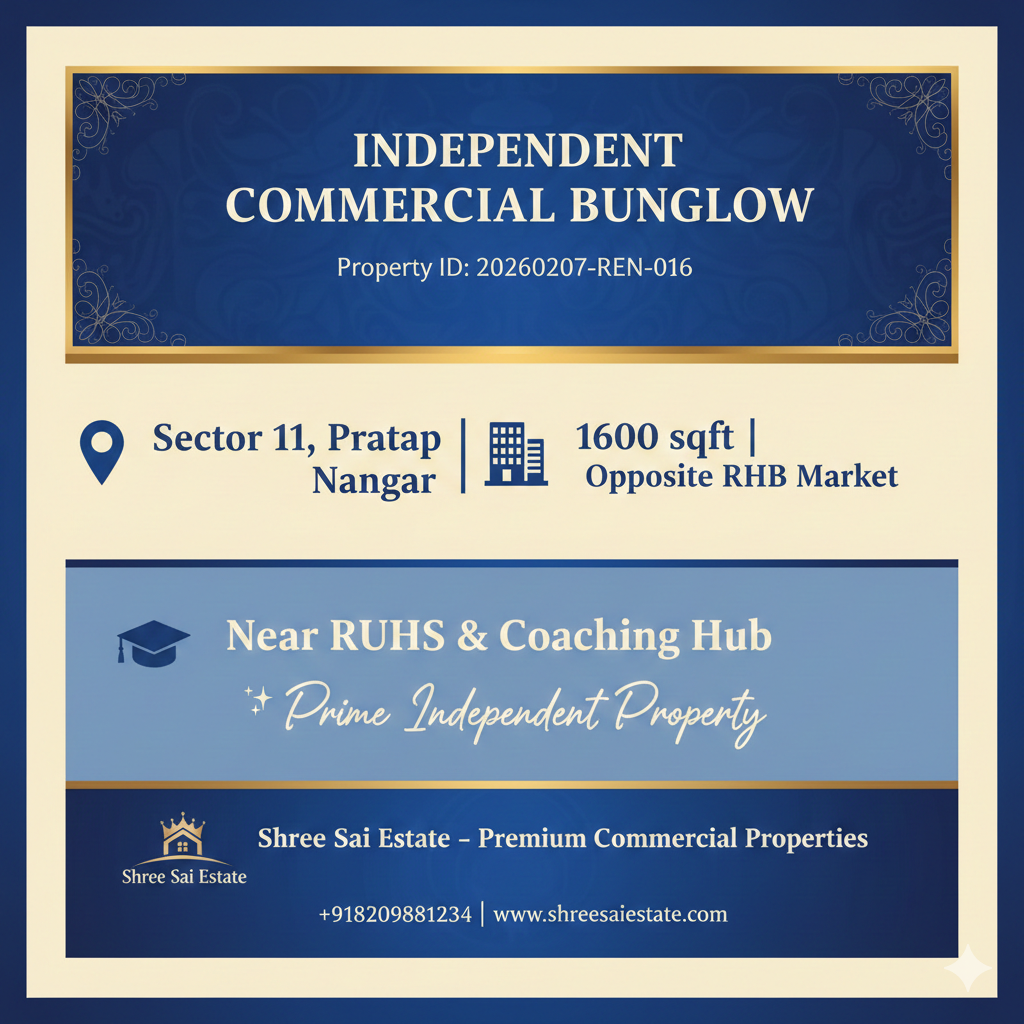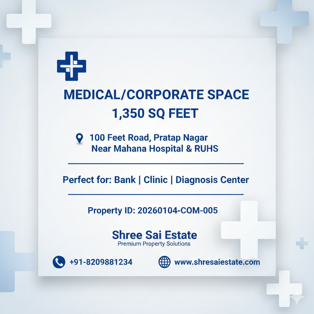 1350 Sqft Prime Office Space on 100ft Road Near RUHS, Pratap Nagar