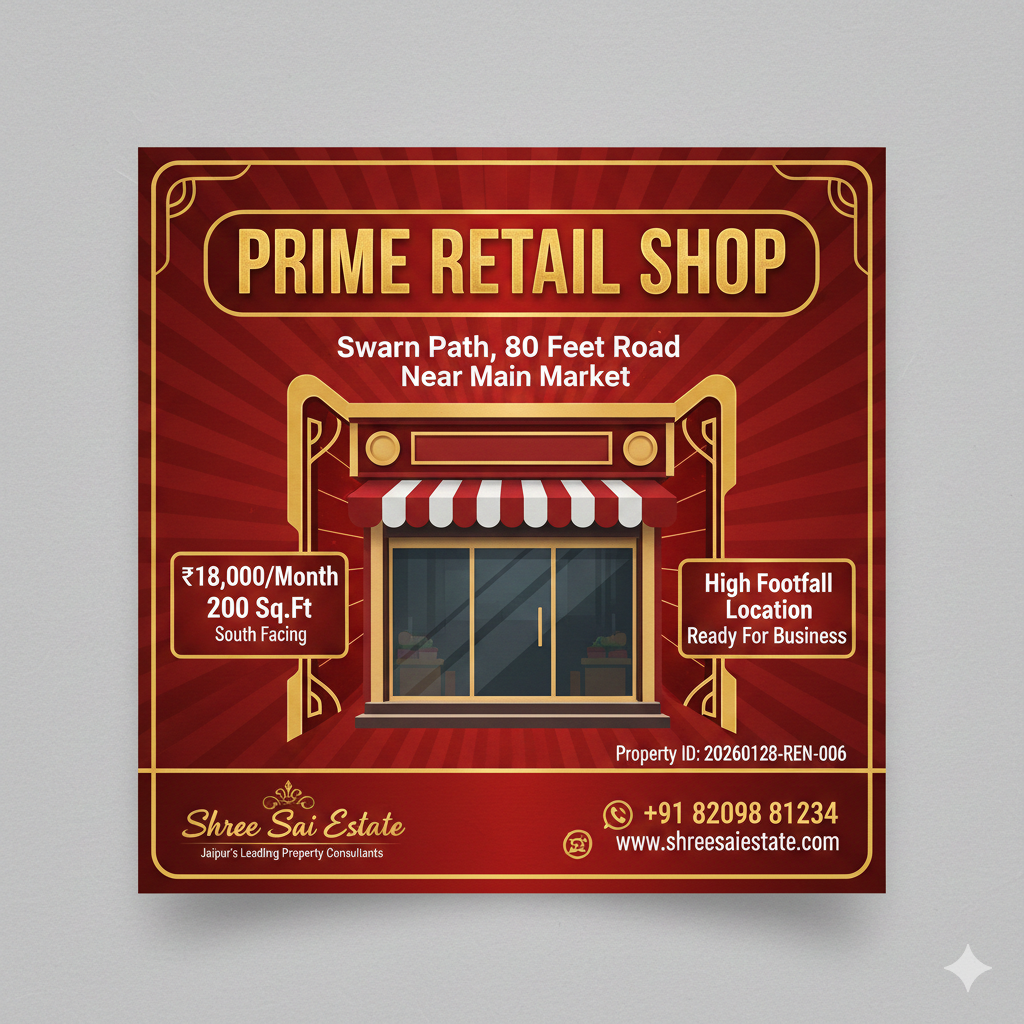200 Sqft South Facing Shop on Swarn Path 80 Feet Road ₹18K