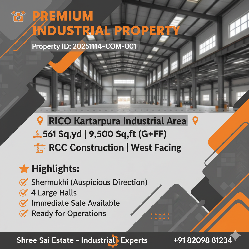 561 Sq Yard Industrial Property 9500 Sq Ft in RIICO Kartarpura West Facing