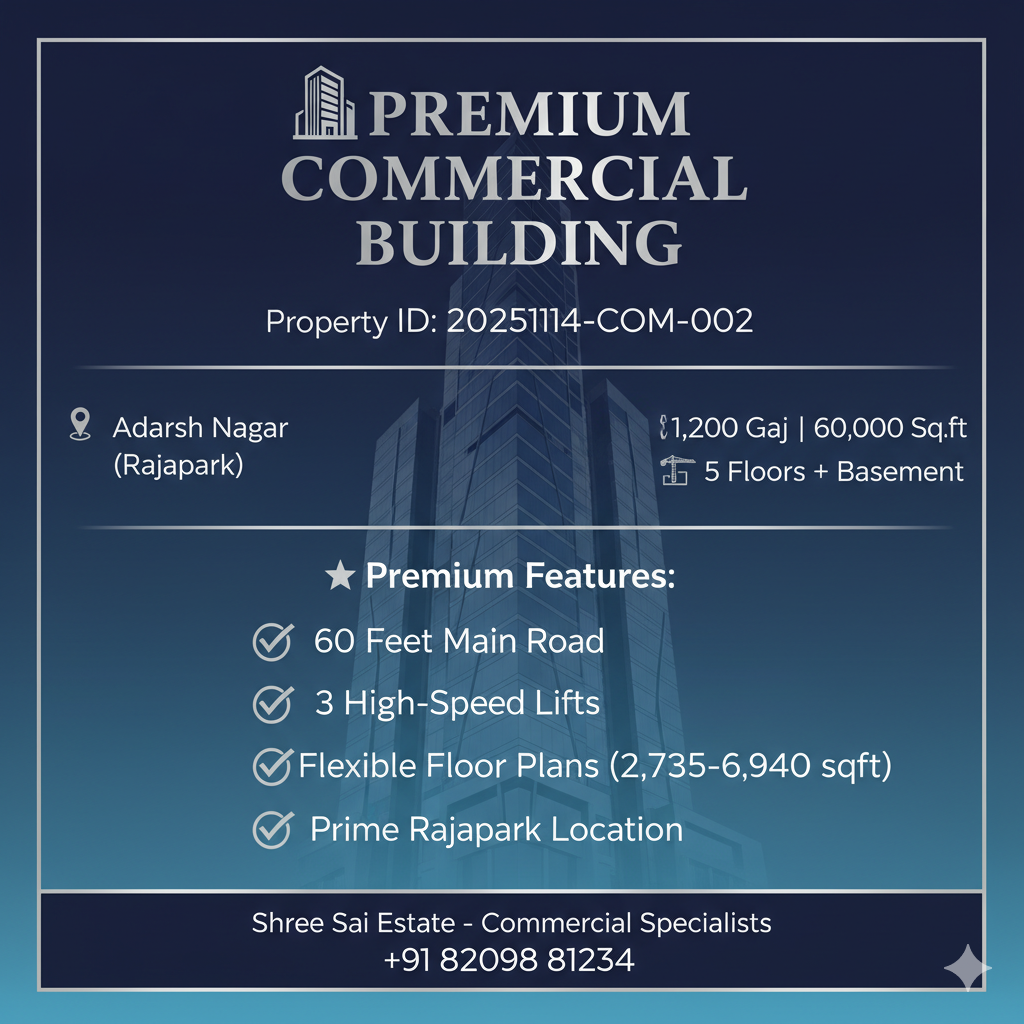1200 Gaj Multi-Floor Commercial Building 60000 Sq Ft in Adarsh Nagar Rajapark