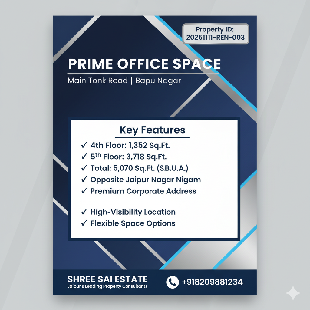 1026 Sqft Commercial Office Space for Banks & Corporates - Tonk Road