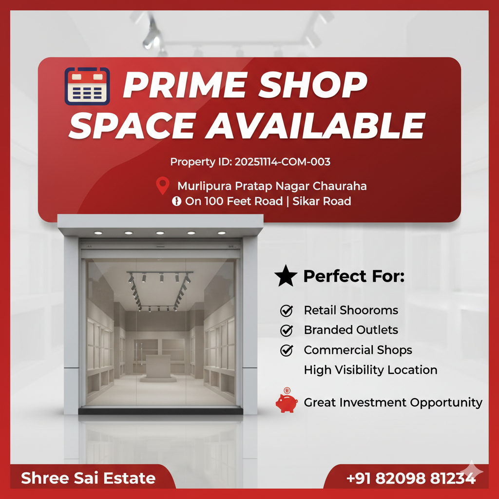 Commercial Shop Space on 100 Feet Road Near Murlipura Pratap Nagar Chauraha
