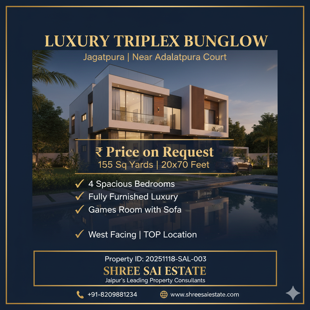Fully Furnished 4 BHK Luxury Triplex Bungalow Near Adalatpura Court Jagatpura