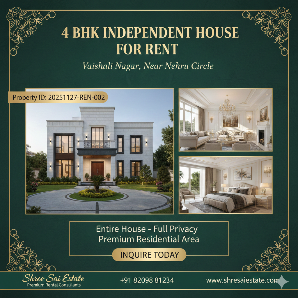 4 BHK Independent House for Rent - Vaishali Nagar Near Nehru Circle