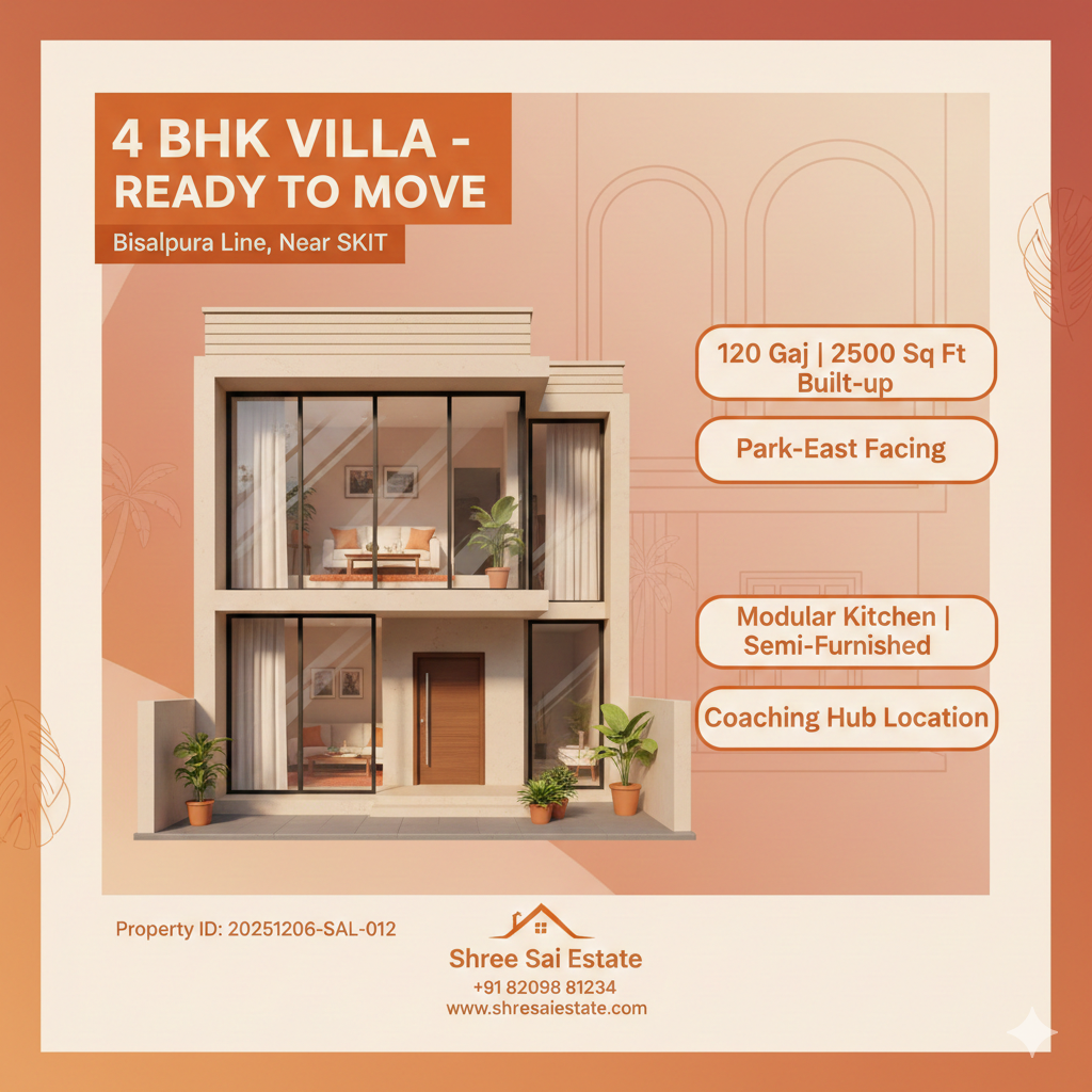4 BHK East Facing Villa Near Coaching Hub - Bisalpura Line