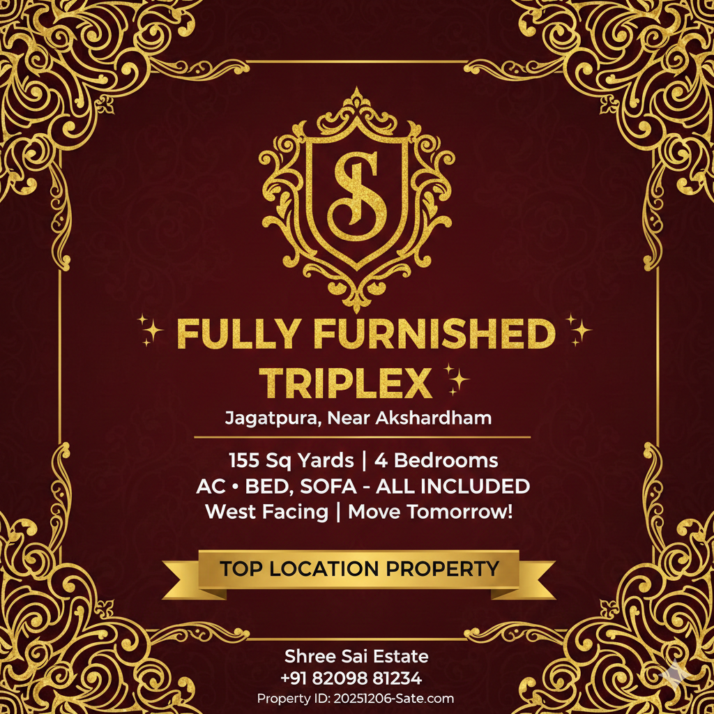 Fully Furnished Triplex Near Akshardham - 4 Bedroom Luxury