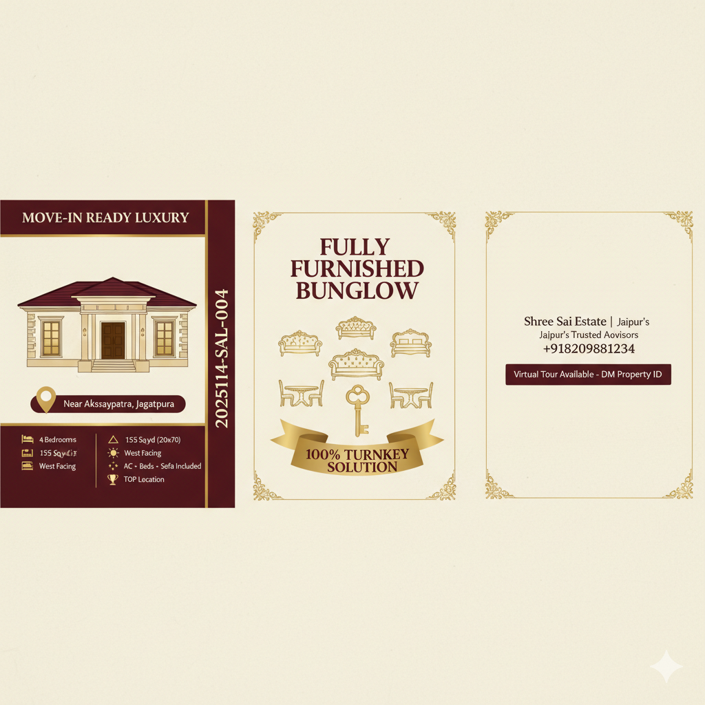 Fully Furnished 4 BHK Luxury Bungalow Near Akshayapatra Jagatpura - West Facing